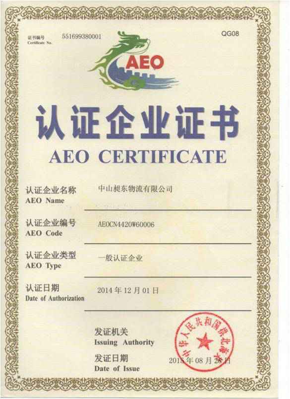 • Certified enterprise certificate of AEO Certificate (East Changer customs broker)