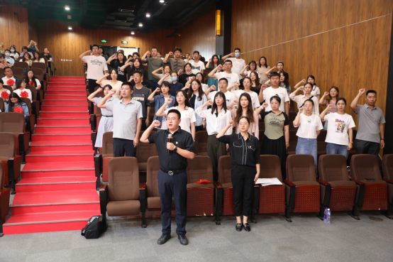 党委教师工作部部长张未萌带领新入职教师宣誓。新入职教师代表、党委宣传部全冬梅老师表达了对学院关怀的感谢及成为一名人民教师的自豪之情,她表示要练就过硬本领,涵养高尚师德,争做“四有”好老师和“四个引路人”,“努力把学生培养成为拥有‘四个自信’的孩子”、培养成德智体美劳全面发展的社会主义建设者和接班人。