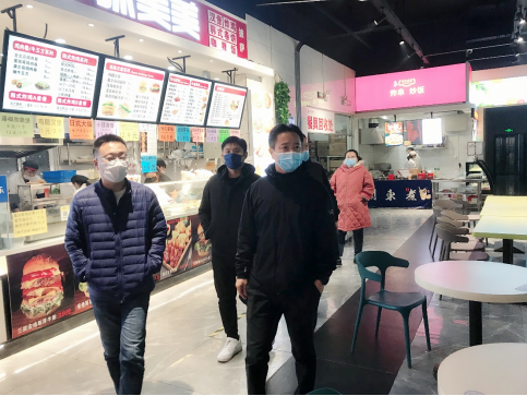在学生食堂,工作小组对当前学生封闭管理的供餐、食品安全等工作进行现场检查,现场指出发现的问题并提出整改要求。