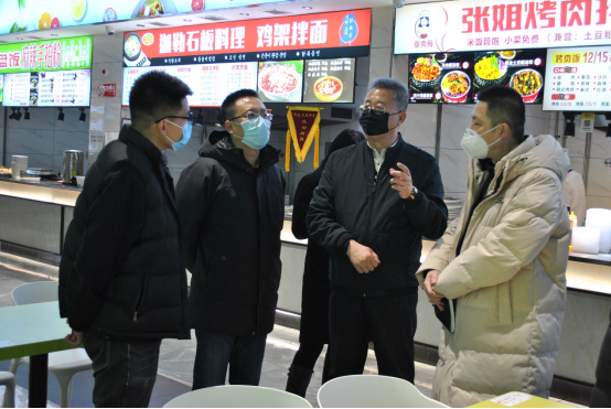 3月7日上午,学院党委书记郭玉铸走访检查新学期疫情防控工作,并召开现场办公会,对新学期疫情防控工作提出新要求。党委委员、副院长宋辉,副院长石华及相关部门随行检查。
