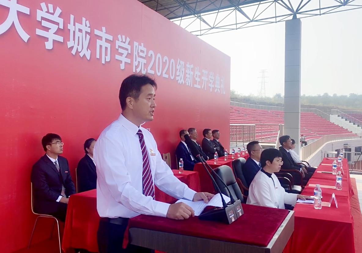 9月27日,beat365在新校区体育场隆重举行2020级新生开学典礼。党委副书记兼副院长(主持行政工作)杨斌、副院长石华、邹亚新、沈海龙、宋辉,各分院负责人、教师代表及全体2020级新生参加典礼。开学典礼由副院长石华主持。