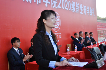 来自艺术与传媒学院的教师代表李金花说到,青春是需要奋斗的,千万不要让你自己的青春残缺有遗憾,有了学业却忘记努力,有了爱情却轻易放弃,有了友情却随意伤害,有了时间却挥霍不已。希望同学们把青春化为助力,不忘初心,以良好的心态融入城市学院,为城市学院的发展贡献自己的力量。