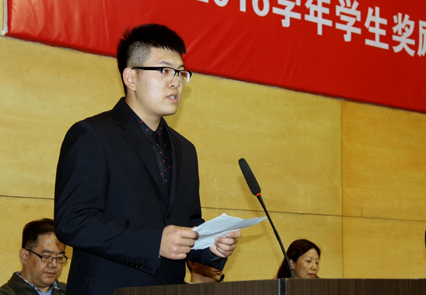 获奖学生代表肖琳、新生代表张瞿浩然分别在会上发言。