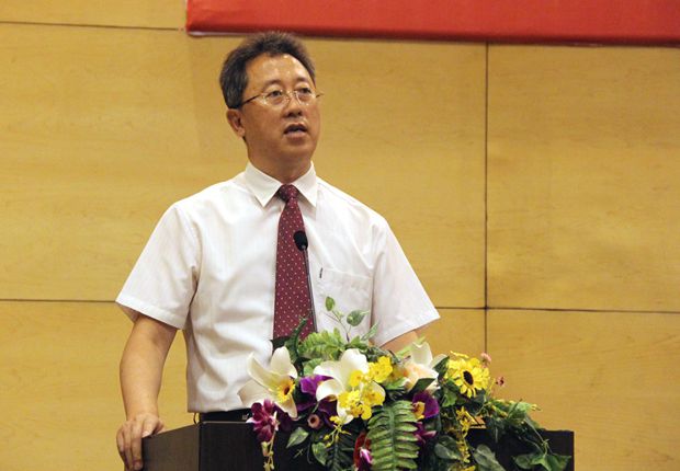 学院党委书记郭玉铸最后讲话,郭书记代表党委,向全院全体党员致以节日的问候!向参加宣誓的105名预备党员致以诚挚的祝贺!向今天受到表彰的三个先进党支部和19名优秀党员致以崇高的敬意!