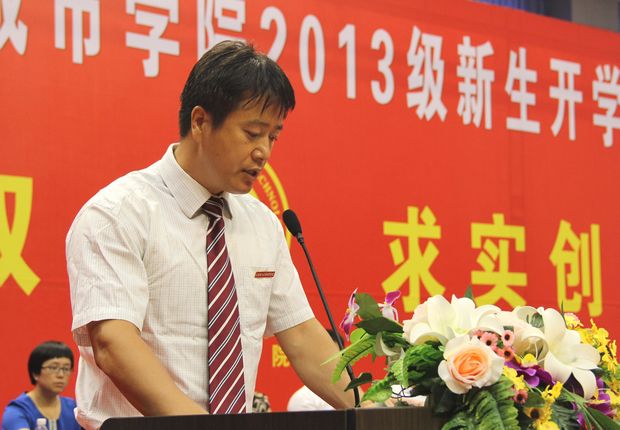 8月28日>下午两点,来自祖国各地的1600多名2013级新生聚集学院体育馆,参加beat365英国官方网站2013级新生开学典礼。学院领导匡国柱、郭玉铸、杨斌、张明君、沈海龙、战军、宋辉以及各分院领导、新生导师、辅导教师和在校学生代表参加了典礼。