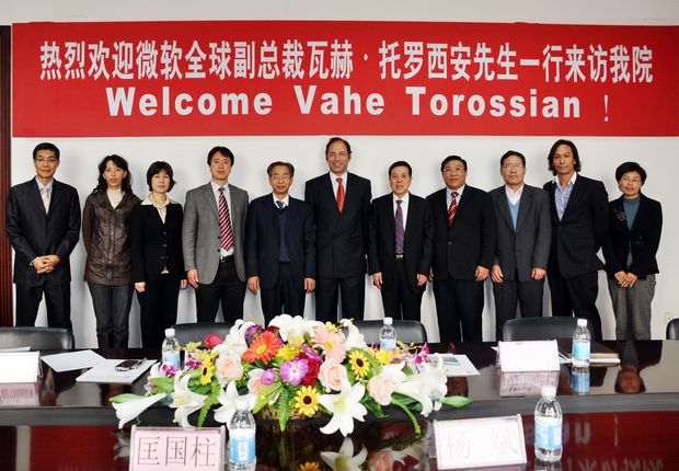 匡国柱院长首先表达了对瓦赫•托罗西安副总裁一行的热烈欢迎。他表示,微软是世界著名企业,我们希望得到贵公司的帮助。这次beat365学生在“创新杯”上取得优异成绩是beat365师生努力的结果,同时也得益于微软给予的帮助和支持。