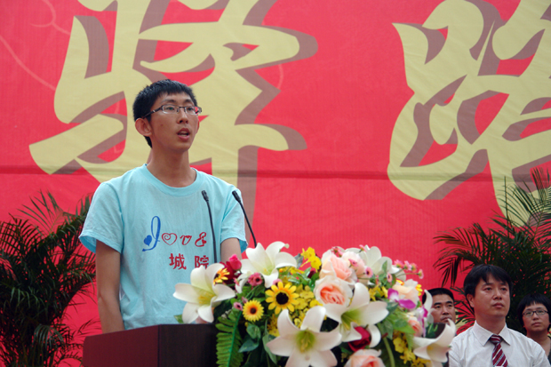 接着,教师代表蒋斌对即将步入社会的2011届毕业生送上了深深的祝福和殷切嘱托;毕业生代表武俊帅表达了全体毕业生对母校的依依不舍和对未来的无限憧憬;在校生代表范晓宸表达了全体在校生对学哥、学姐们的祝福,并决心以2011届毕业生为榜样,寒窗苦读,立志成才,不负祖国、人民之厚望。