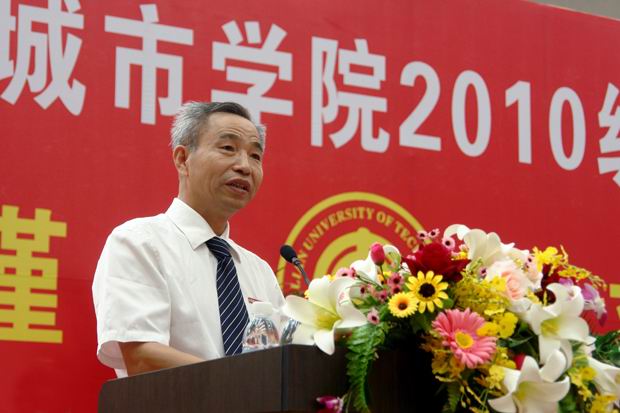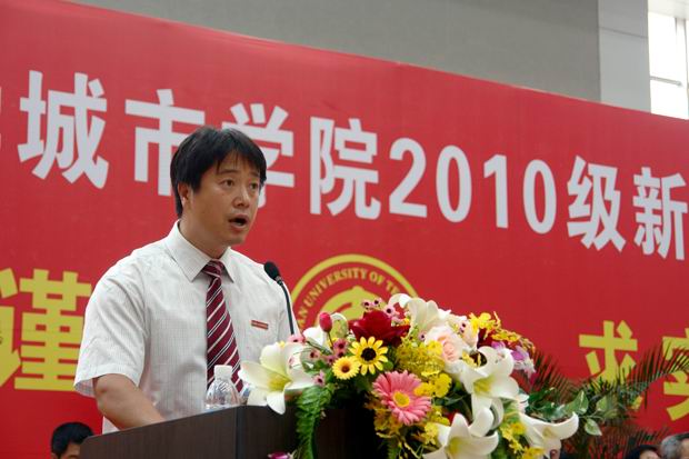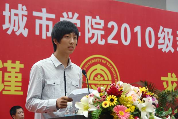 教师代表付刚老师首先发言,他希望2010级新同学不辜负社会、学校、家长的殷切期望,从入学的第一天起,争分夺秒,刻苦学习,勇于拼搏,在四年的学习和生活中学会做人,学会做事,学会生活,学会学习,学会合作。