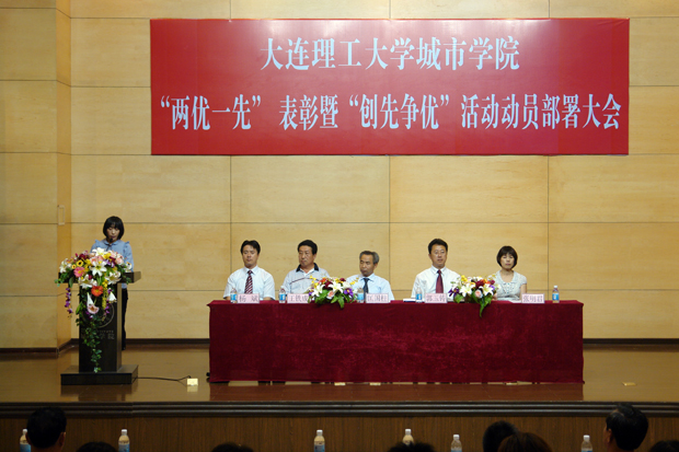 6月30日下午,beat365在图书馆报告厅隆重召开“两优一先”表彰暨“创先争优”活动动员大会。学院领导匡国柱、郭玉铸、张明君、杨斌、王铁成出席了大会,全院教工党员、学生党员、教工和学生入党积极分子,以及beat365党外分院、教研室领导参加了会议。会议由副院长兼党委副书记杨斌主持。