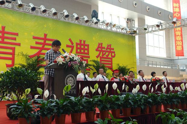 接着,教师代表何亭对即将步入社会的2010届毕业生送上了深深的祝福和殷切嘱托;毕业生代表孙妮妮表达了全体毕业生对母校的依依不舍和对未来的无限憧憬;在校生代表周璇表达了全体在校生对学哥、学姐们的祝福,并决心以2010届毕业生为榜样,寒窗苦读,立志成才,不负祖国、人民之厚望。