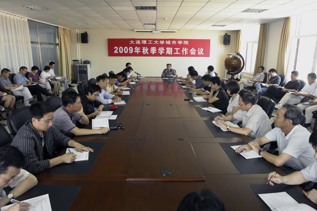 城市学院2009年秋季学期工作会议于8月30日下午在8楼会议室召开,学院领导匡国柱、郭玉铸、杨斌、王铁成、沈海龙、李宪起、王玉林、王善坤出席会议,各分院院长、各部门负责人以及各教研室主任、工程实践中心主任和学生办公室主任参加了会议。会议由杨斌副院长主持,匡国柱院长和郭玉铸书记分别部署新学期人才培养工作和党的建设工作。