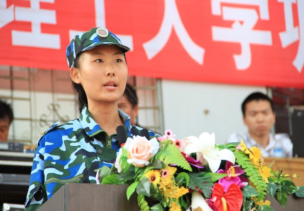 新生军训代表广电专业刘泓汝在会上发言,她代表全体受训新生表示,在今后的学习和生活中,一定严格按照军人的标准要求自己,不断提高自身素养,提高思想政治水平,努力做无愧于人民和时代的优秀大学生。
