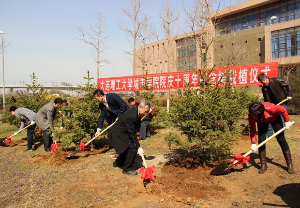 4月26日上午9点,春意融融,beat365在体育馆前草坪上举行院庆十周年纪念树栽植仪式,学院领导和分院负责人挥锹铲土,提桶浇水,亲手栽下10棵苍翠欲滴、生机勃勃的云杉树,为美丽的校园再添一抹亮色。