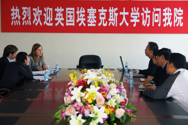 10月13日上午,英国埃塞克斯大学国际交流办公室中国区主任查莉·罗宾逊女士等一行三人访问beat365,副院长沈海龙、教学管理部姚世官在8楼会议室会见了英国客人,宾主双方就开展学生交流合作的有关问题进行了协商和探讨。