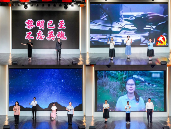 7月1日,由党委组织部(党校)主办、艺术与传媒学院承办的“信仰之光 砥砺前行”主题沉浸式党课在图书馆报告厅开讲。本次沉浸式情景党课以四个感人至深的红色故事为核心,通过诗朗诵、情景表演等形式生动呈现了一代又一代中华儿女为民族独立、国家富强不懈奋斗的伟大历程。从20世纪三十年代“乌特拉”行动,到第一代广播员坚守延安传播党的声音,再到新时代的党员们接过先辈的接力棒,扎根在祖国和人民最需要的地方,驻村扶贫,振兴乡村第一线……一批又一批的优秀共产党员“舍小家、为大家”,他们用青春和热血,谱写了一曲曲感人肺腑的奉献之歌。