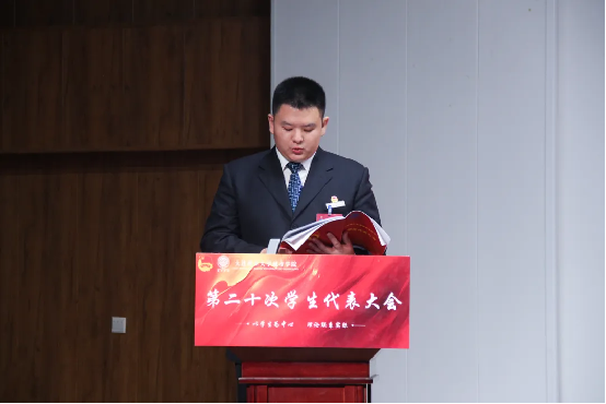 大会通过了第十九届学生工作委员会主席刘佳明作的《踔厉奋发,挺膺担当,奋斗中谱写时代华章;志存高远,脚踏实地,实践中放飞青春梦想》工作报告。