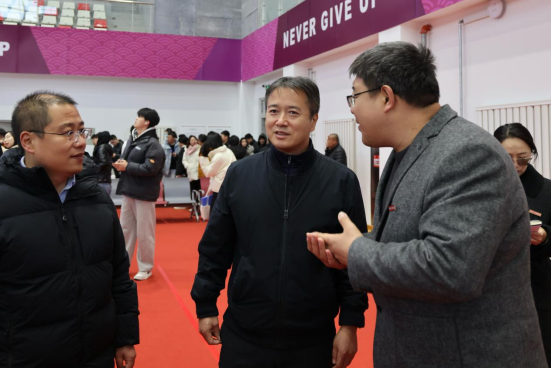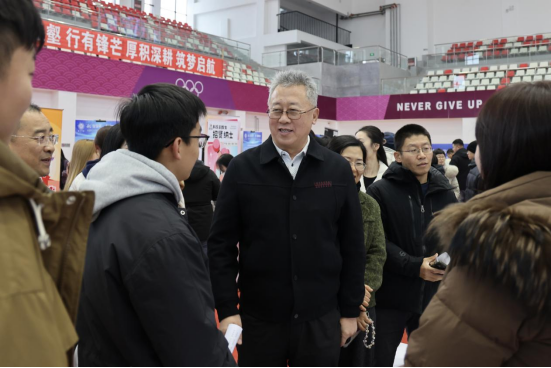 院长杨斌在双选会现场与相关负责人交流
