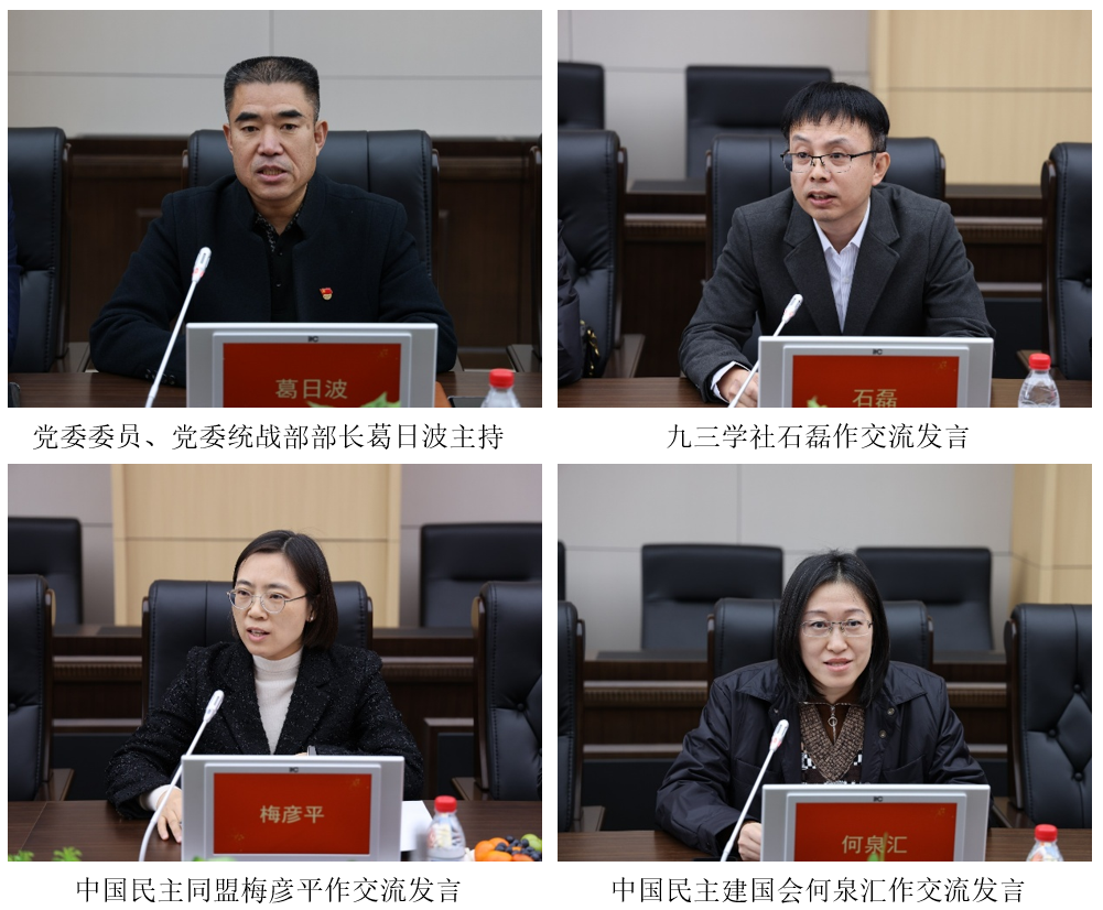 会上,九三学社石磊、中国民主同盟梅彦平、中国民主建国会何泉汇三位代表作交流发言,其他教师也结合工作实际谈了体会,进一步凝聚了思想共识,为推动学院高质量发展贡献了智慧。