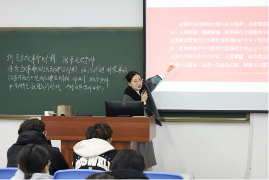 专家组分别听取了朱雨珊和徐鹤洋两位思政课教师讲授的《习近平新时代中国特色社会主义思想概论》课程,并在课程结束后对两位老师的授课情况进行了现场指导,对两位青年教师沉稳有度和活跃的课堂互动表示赞赏。