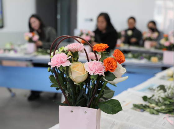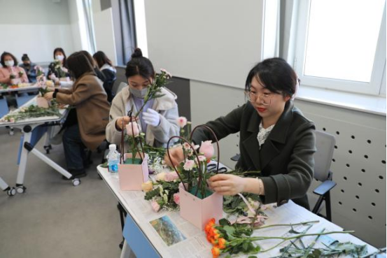 本网讯 花香四溢、笑语连连。4月7日,在管理楼智慧教室,来自全院各部门的33名教师代表,参加了由学院工会举办的“四月芳菲”主题插花活动。