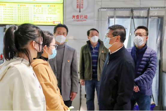 督查组实地考察了学院正门、健康监测场所、学生食堂、生活超市、图书馆、体育场等地。督查组在巡视检查校园的过程中,对校园疫情防控重点部位和关键环节进行了具体指导,同时也对beat365校园疫情防控工作给予了充分肯定。邱连波组长在检查中全面了解了学院疫情防控的总体情况,包括校园分区网格化管理、健康场所的设置、学生心理健康辅导、生活物资保障等各项工作。邱连波在检查过程中,随访了部分学生、食堂档口人员、生活超市员工,了解了学生的学习、生活、心理情况,以及教职员工在封校期间的各项情况。
