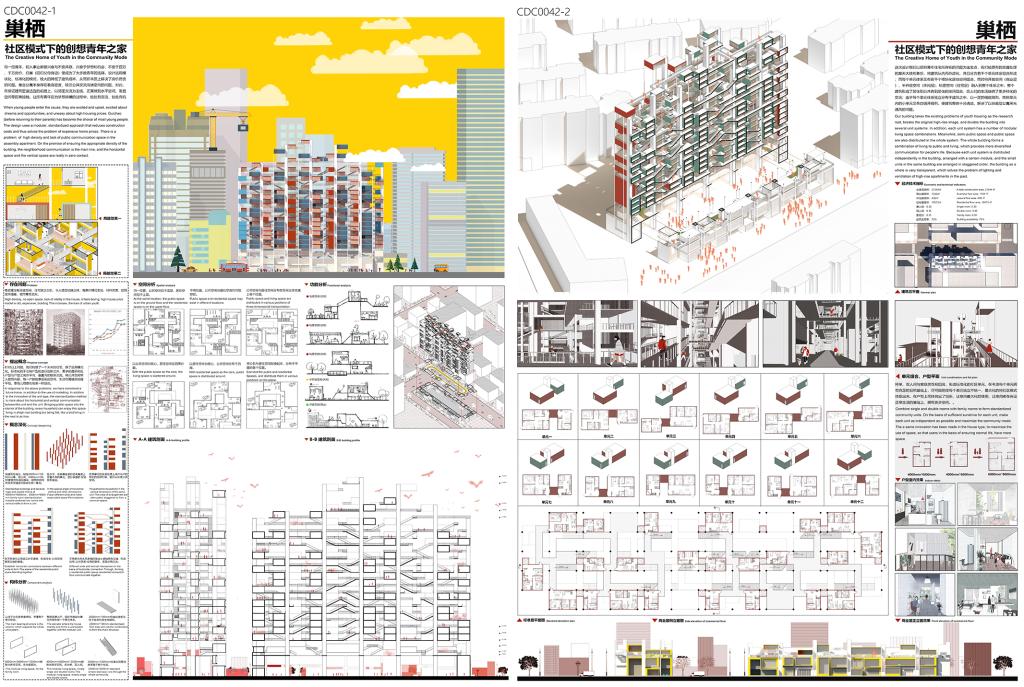 | 获奖作品2:《巢栖 社区模式下的创想青年之家》作者:王一琪、周思静 |
