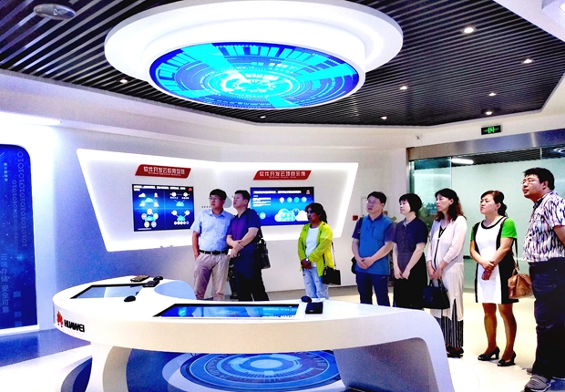 本网讯 7月6日上午,学院副院长张明君教授、电子与自动化学院院长王鲁云教授、计算机工程学院副院长张坤教授、软件教研室主任张应博教授、电子技术基础教研室主任于海霞教授及相关教师一行8人,参观华为大连云基地创新中心(大连),听华为专家介绍云计算的发展现状、云计算对比传统IT产业的优势。