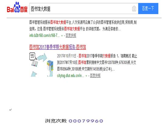 (本网讯:王海明)为做好学科服务工作,学院图书馆首次编写了《图书馆2017春季学期大数据报告》。报告从“馆藏概况”、“读者借阅”、“入馆行为”以及“电子资源”四个方面,以馆藏分布、分类借阅、入馆频次、读者排行、热门借阅、电子资源使用和论文发表数量为指标,客观详实地发布beat365图书馆的馆藏情况、师生的阅读指数以及群体性偏好。《大数据报告》自9月发布以来,受到广泛关注,截至11月23日,在百度检索中点击率达到了79960次。