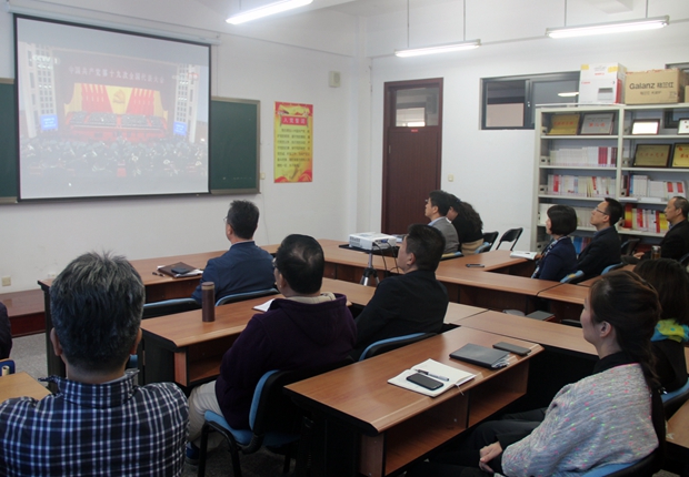 10月18日上午9点,学院党委组织学院班子成员、党委委员、各部门、各分院负责人、各党支部书记到2705教室集中收看党的十九大开幕会实况,聆听习近平总书记代表十八届中央委员会向大会作的报告,庆祝党的十九大胜利召开。广大师生员工也通过电视、网络、广播等不同形式收看、收听了十九大开幕式实况,师生们高度关注,反响热烈。