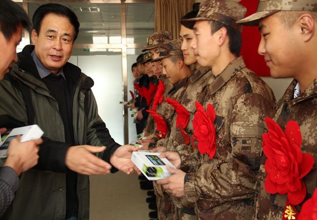 王大军主任代表学院向新兵赠送纪念品
