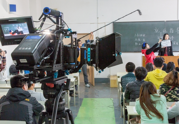 中午12时30分,剧组于实验楼JT201教室进行拍摄,广电学子积极参与群演工作,深切体会到团队配合的重要性。在摄制现场,不论是摇臂、灯光、话筒等专业拍摄设备的使用,还是剧组成员精益求精的拍摄态度,都给大家留下了深刻的印象,并提高了同学们对现场拍摄流程的认知。