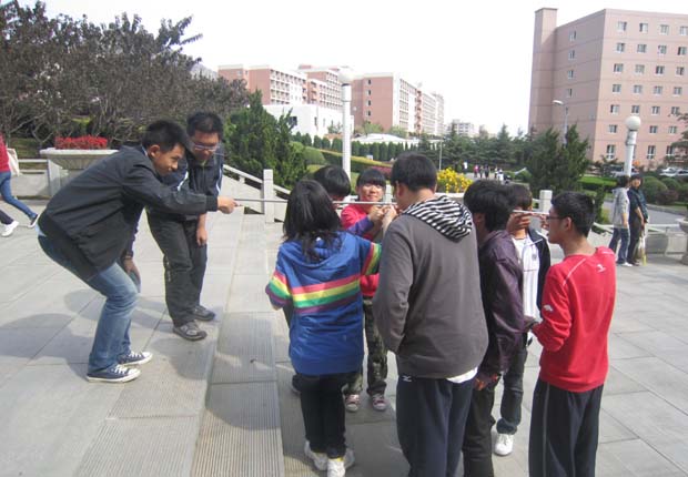 在大学生心理健康教育宣传月中,心理咨询室还组织了“适应新环境、开创新生活”主题拓展训练活动,近40人参加了拓展,让同学们在轻松愉悦的气氛中,培养团队精神,相信团队成员,学会与他人相处。