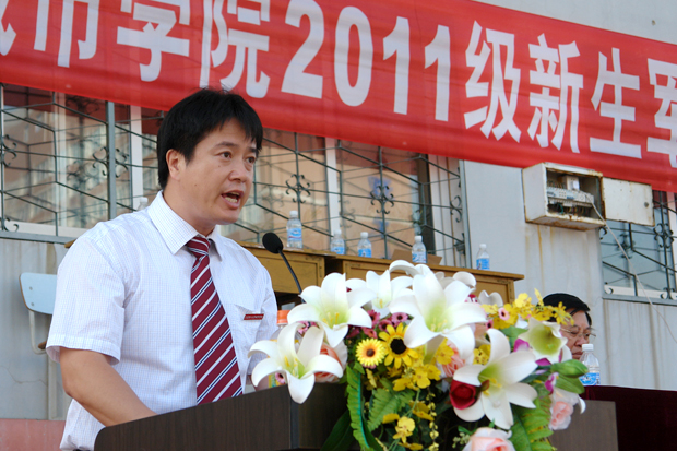 杨斌副院长代表学院讲话,他对全体参训官兵表示衷心的感谢,对胜利完成各项军训任务的2011级新生表示热烈的祝贺。他表示,在教官们高度负责、科学施训和各分院及相关部门的精心组织下,整个军训过程中没有发生安全事故,学院对此十分满意。杨斌副院长对2011级新生在军训和会操表演中所展现的精神风貌给予了充分的肯定。他希望同学们继续发扬军训中顽强拼搏、自强不息、团结奋斗的精神,把军人的优良品质和作风转化为学习的动力,带到今后的学习生活中,争取更大的荣誉和成绩。
