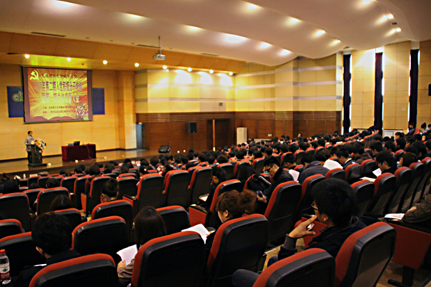 11月7日,由学院党群工作部主办,电子信息工程专业学生党支部承办的2010年度第二期入党积极分子培训暨第一期总结表彰大会在图书馆报告厅召开。共有280名入党积极分子及14名新生党员参加了本期培训。培训班由电子信息工程专业学生党支部书记刘丽娟老师主持。
