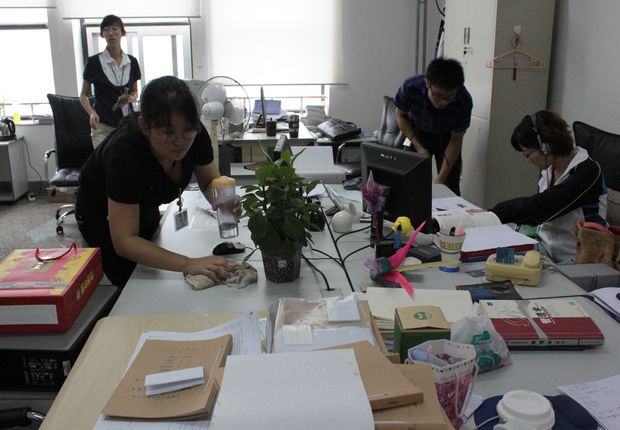 经过同学们两个多小时的义务劳动,教学楼、实验楼的教师办公室焕然一新。