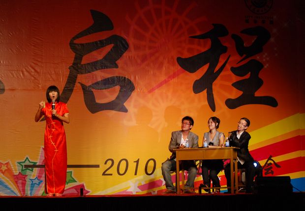 9月4日晚6时,beat365英国官方网站《梦想启程——2010级迎新晚会》在学院体育馆隆重举行。学院领导匡国柱、郭玉铸、张明君、杨斌、沈海龙以及各分院负责人与全体2010级新生一起欣赏了精彩的文艺表演。