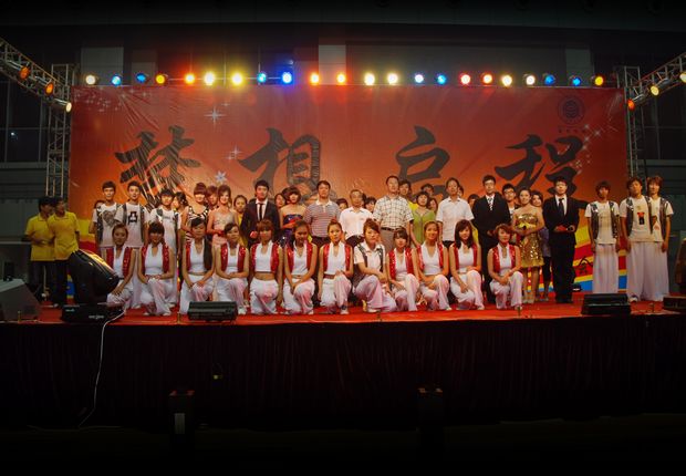 晚会在全场经久不息的热烈掌声中圆满结束,学院领导上台看望了全体演职人员,并合影留念。
