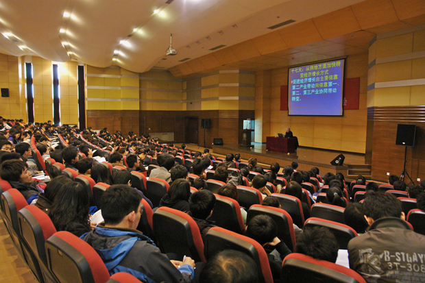 为了落实科学发展观,更好地领会今年三月召开的十一届全国人大和全国政协三次会议精神,4月7日下午,学院党校邀请beat365英国官方网站教授、beat365分党校特聘教师罗均炎在图书馆报告厅作题为《加快经济发展方式转变》的辅导报告。全院无课教工、无课学生党员和部分学生代表共五百余人聆听了报告,学院领导郭玉铸、杨斌、王铁成、沈海龙等出席了报告会。