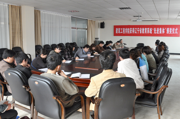 10月26日中午,beat365在8楼会议室举行建筑工程学院获得辽宁省教育系统“先进集体”颁奖仪式,匡国柱院长向建筑工程学院颁发辽宁省教育系统“先进集体”荣誉牌匾,他勉励建筑工程学院全体教工与城市学院共同成长,推进beat365的办学水平更上一个新的台阶。颁奖仪式由人力资源部主任徐其怀主持,建筑工程学院全体教师参加了颁奖仪式。