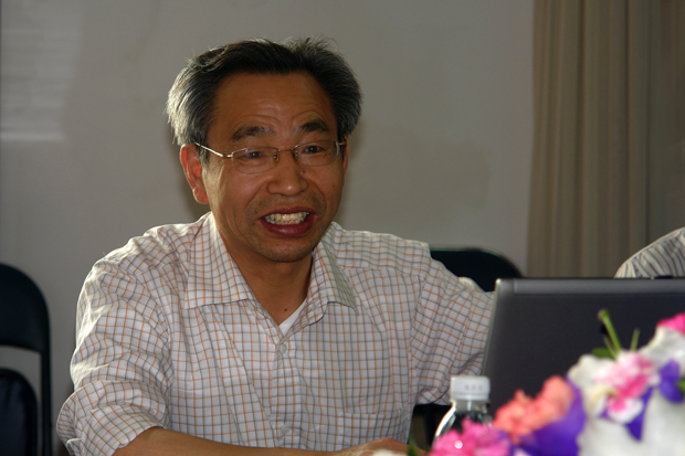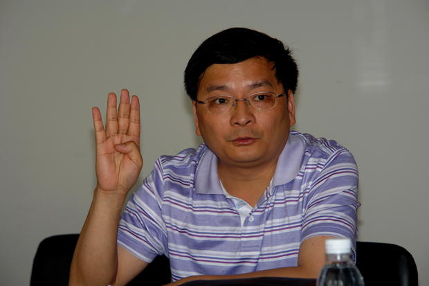 (匡国柱院长向客人介绍学院情况)