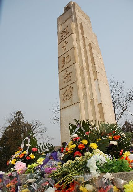 (纪念碑前摆满了鲜花)