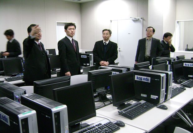 (访问团考察京都信息大学计算机室)