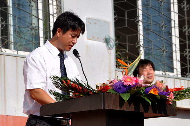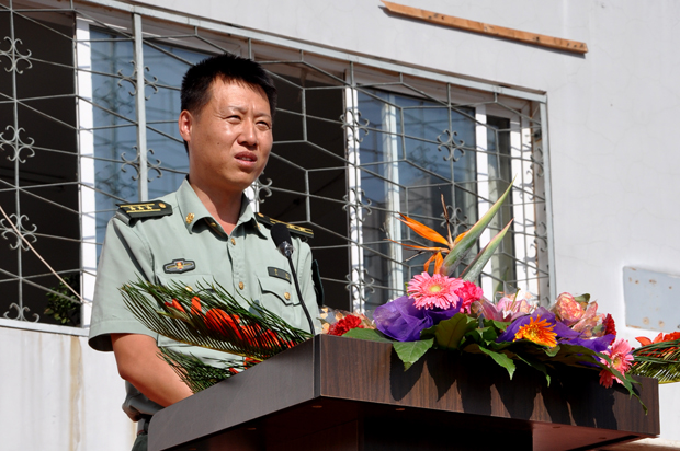 沈阳军区综合训练基地军训办副主任于江代表参训部队讲话,他代表基地首长向几年来城市学院领导对沈阳军区综合训练基地的信任表示衷心的感谢。他要求参训教官发扬艰苦奋斗的精神,认真做好本次军训工作。