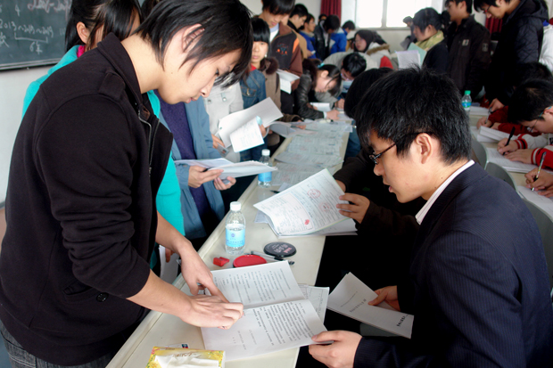 整个签约过程秩序井然,截止到15点40分,219名学生的合同全部签定完毕,并领到了贷款银行卡。