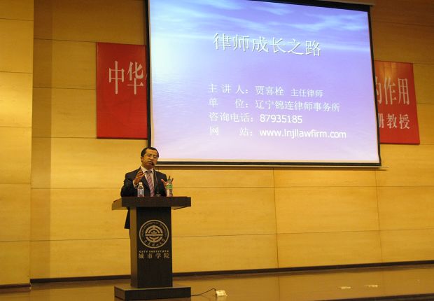 通过个人奋斗历程的回顾,贾喜栓律师总结出个人的三点感悟与同学们共同分享:一是人生要树立目标,包括近期目标和远期目标;二是对人生的态度要乐观、勤奋、有责任感(包括对父母、家庭、社会等);三是要建立良好的人脉关系,对同学、同乡、同事、朋友要真心相待,为自己的未来创造和谐的发展空间。贾律师的信条是“创新、诚信、求实”,他认为这不仅是一个公司、一个企业应具有的品质,也是当代大学生所必不可少的。贾律师丰富的阅历、积极的人生态度、诙谐的语言赢得了师生热烈的掌声。
