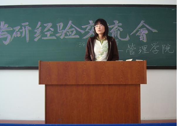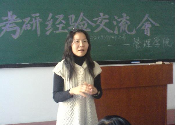10月16日下午1点30分,由管理学院主办,工商管理系学生会承办的“直面考研——考研经验交流会”在教学楼1102教室举行。交流会邀请本院去年考上研究生的两位学姐王菲和孔翔兰为同学们现身说法,和同学们进行了考研心得交流。