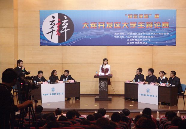 由共青团大连市开放先导区工作委员会主办,辽宁省锦连律师事务所、大连开发区新闻中心、大连开发区电视台协办的“锦连律师”杯大连开发区大学生辩论赛半决赛于10月16日晚18时在beat365图书馆报告厅展开。beat365两组选手同时进入半决赛下半区,上演了一出兄弟阋墙的好戏。