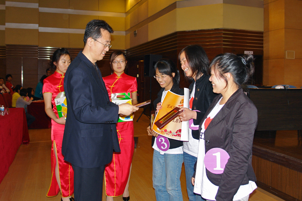 6月4日下午1点,由党群工作部主办、管理学院团委承办的“学习贯彻十七大、坚定信念跟党走”知识竞赛决赛在图书馆报告厅隆重举行。学院党委书记郭玉铸、院长助理李宪起、党群工作部主任刁庭元、团委书记赵姝婕以及各学生党支部书记、分院团委书记到场观看了比赛并为获奖单位颁奖。