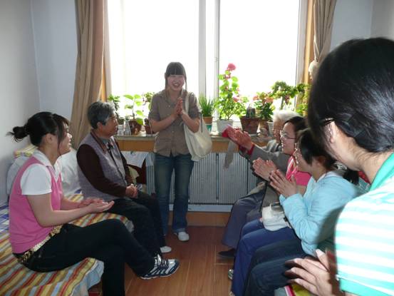 冒着蒙蒙细雨,同学们来到了福利院,来到老人中间,给老人们整理床铺,清扫卫生,陪他们聊天,为老人表演节目。老人们露出了开心的笑容,其中一位89岁的老奶奶还忍不住高兴地唱起了‘东方红’……
