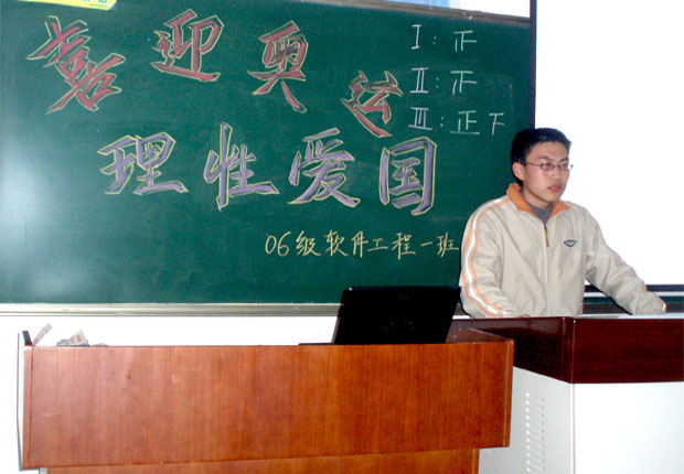 会后,深受教育和鼓舞的软件0601班全体同学发出倡议:在新形势下,我们要以理性方式表达爱国热情,更加刻苦学习,遵章守纪,贡献奥运,报效祖国,以饱满的热情和良好的精神风貌积极地投身院庆的各项活动中。